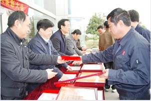 公司領(lǐng)導(dǎo)向先進(jìn)單位代表頒發(fā)獎狀和獎金