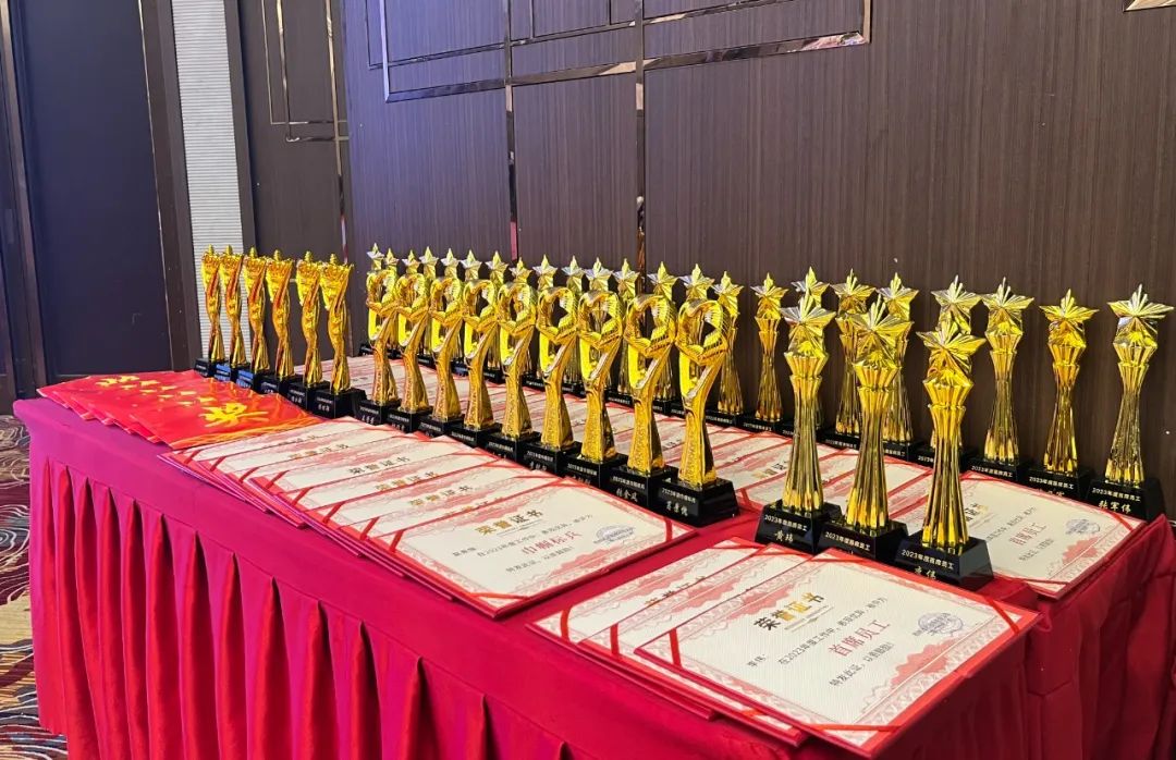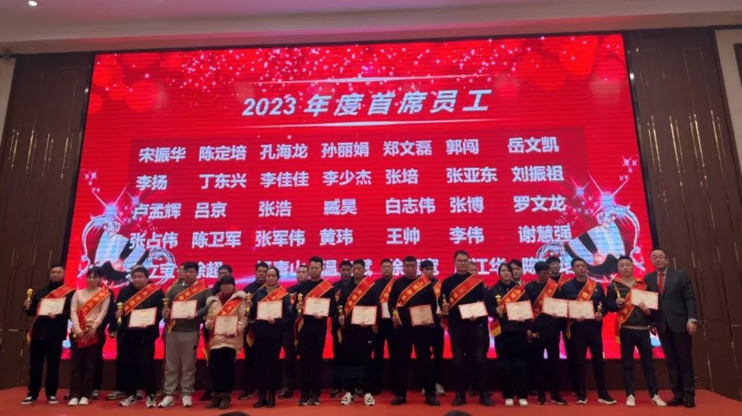 為表彰先進(jìn)弘揚正氣,公司對于2023年度涌現(xiàn)出來的6個先進(jìn)部門、34名首席員工、9名巾幗標(biāo)兵予以通報表彰。頒獎典禮上,在歡快的樂聲中,劉總經(jīng)理親自為先進(jìn)部門、首席員工和巾幗標(biāo)兵頒發(fā)獎杯、獎金、榮譽證書及獎品,并興致勃勃地與先進(jìn)部門、首席員工、巾幗標(biāo)兵合影留念。