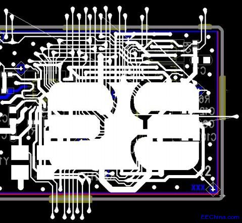 3、板框內(nèi),要確定正負(fù)面,好將所有器件都擺放在同一面,該面用三個(gè)XXX標(biāo)識(shí),如下圖所示。
