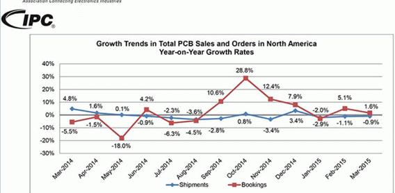 2015年4月29日,美伊利諾伊州班諾克本 — IPC — 際電子工業(yè)聯(lián)接協(xié)會(huì)發(fā)布《3月份北美地區(qū)PCB行業(yè)調(diào)研統(tǒng)計(jì)報(bào)告》。報(bào)告顯示3月份銷售雖然低迷,但是訂單量超過去年同期水平,致使訂單出貨比穩(wěn)定在1.05。