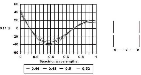 下圖是兩個半波雙極的相互阻抗實例: