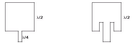 有許多方法可以達到饋線與阻抗匹配。補片可與一個四分之一波長的高阻抗線匹配,或一條50奧姆線可延伸到補片的內部,如下圖所示。阻抗在中心點是小的,且阻抗值是跟著軸長的增加而增加,所以尺寸的選擇是以能得到支持50奧姆的點來決定的。
