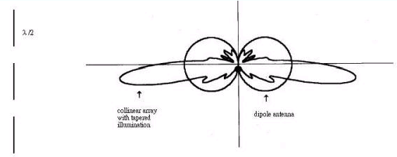 共線性雙極數組(collinear dipole array)廣泛地應用在單點對多點通訊上,雙極的數組沿著垂直軸排列,提供集中于水平軸的場型,同時覆蓋360°的區域時。下圖表示半波雙極數組在不同相角饋給,所產生的輻射場型。